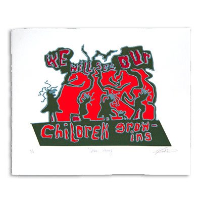 Silhouettes of children growing into trees; stating 'we will see our children growing'. Inspired by the song by Gojira, which created my title.