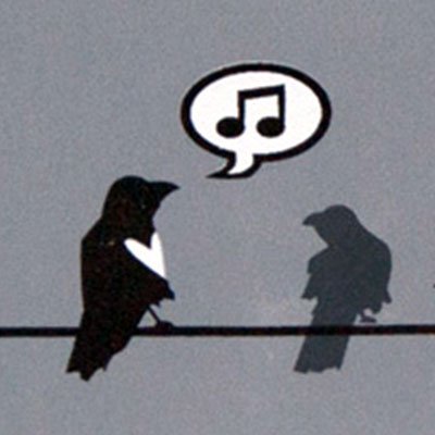 A group of birds on a telephone line. One bird is a symbol for the self - the lovely songbird amongst the crowd in the moonlight.