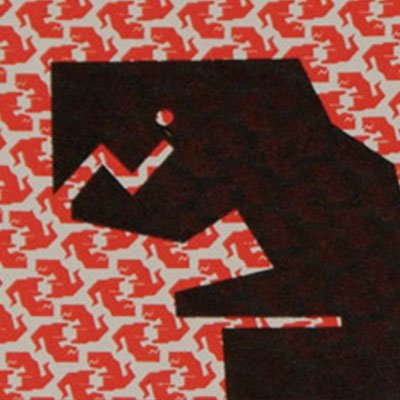 A T-rex printed over a layer of teenie tiny T-rexs'. The print is named after the shape the pattern creates.